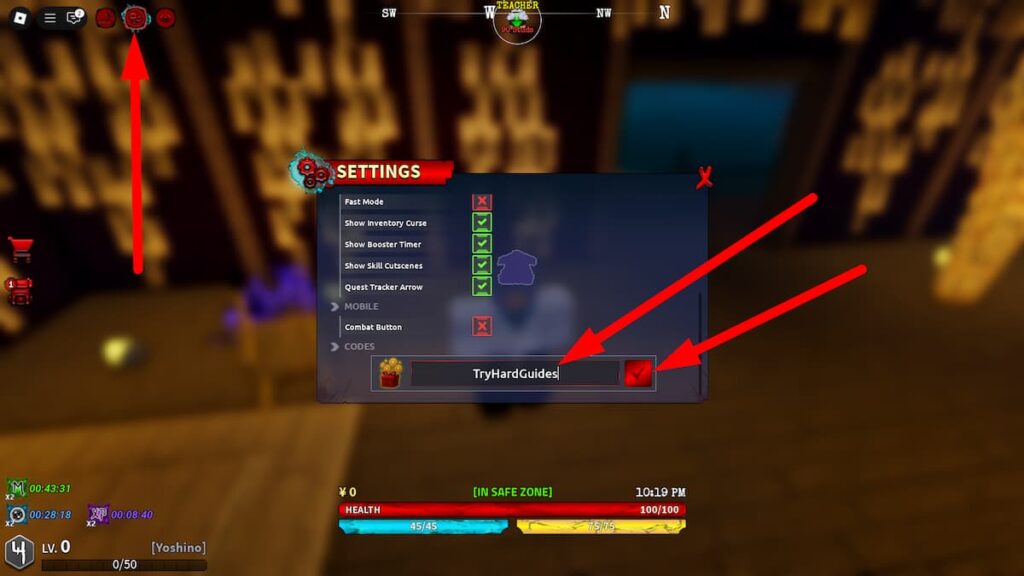 To redeem codes in Roblox Kaizen, follow these steps: