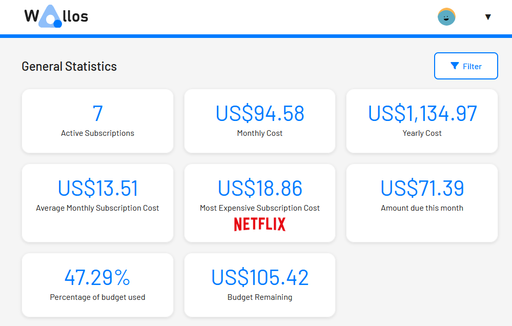 The real benefit for me came when I went to the Statistics page, which is available when you click on your username in the upper-right-hand corner. Before I'd even finished loading in all of my subscriptions, I saw the eye-watering yearly cost: $1,134.97. It also made me really think about how much I've spent over the lifetime of some subscriptions.