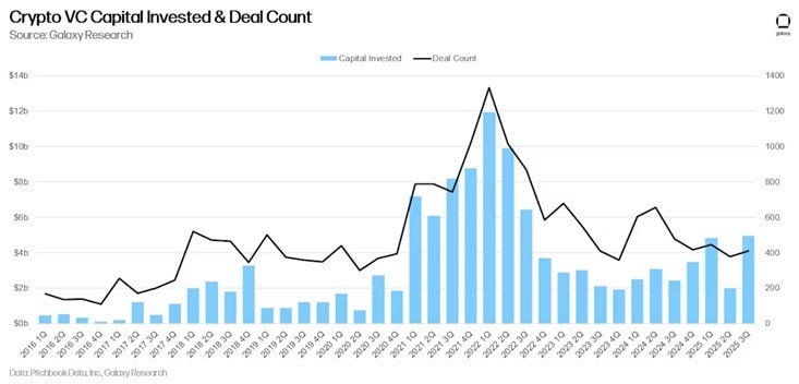 As previously reported, the third quarter also displayed a similar pattern. According to Galaxy Digital, total funding reached $4.65 billion, but the number of deals did not keep pace. Instead, the majority of capital flowed towards larger, more mature firms.