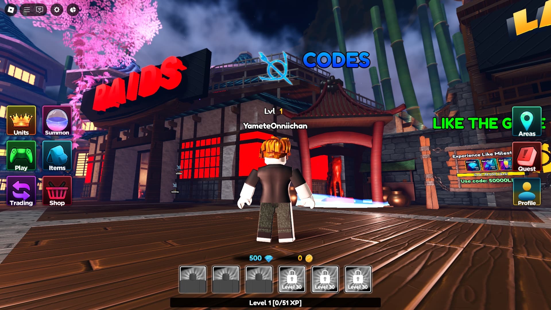 - Mugetsu - 2K Diamonds, 20 Rerolls, and 1 Super Lucky Potion
