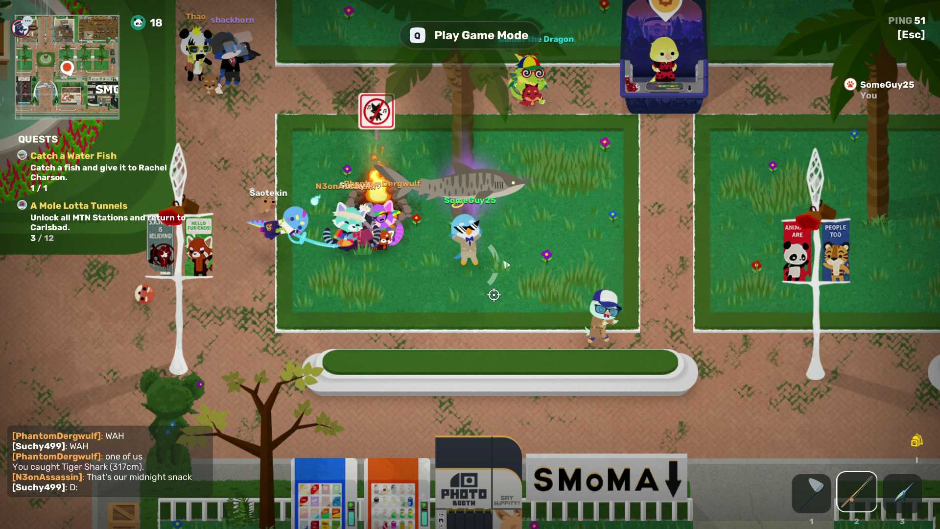 The social hub in Super Animal World is a vibrant and interactive space where players can engage in various activities. From fishing to bug catching, there's no shortage of things to do. Players can also participate in hamster ball racing, adding a playful element to the game.