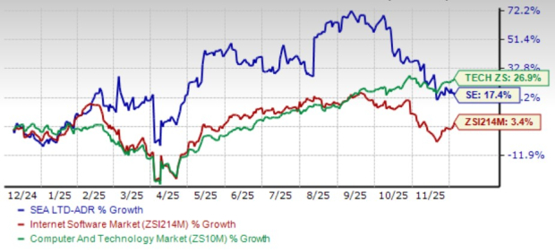 Sea Limited shares have seen a 17.4% increase over the past year, outperforming the broader Zacks Computer & Technology sector, which grew by 26.9%, and the Zacks Internet - Software industry, which returned 3.4%.