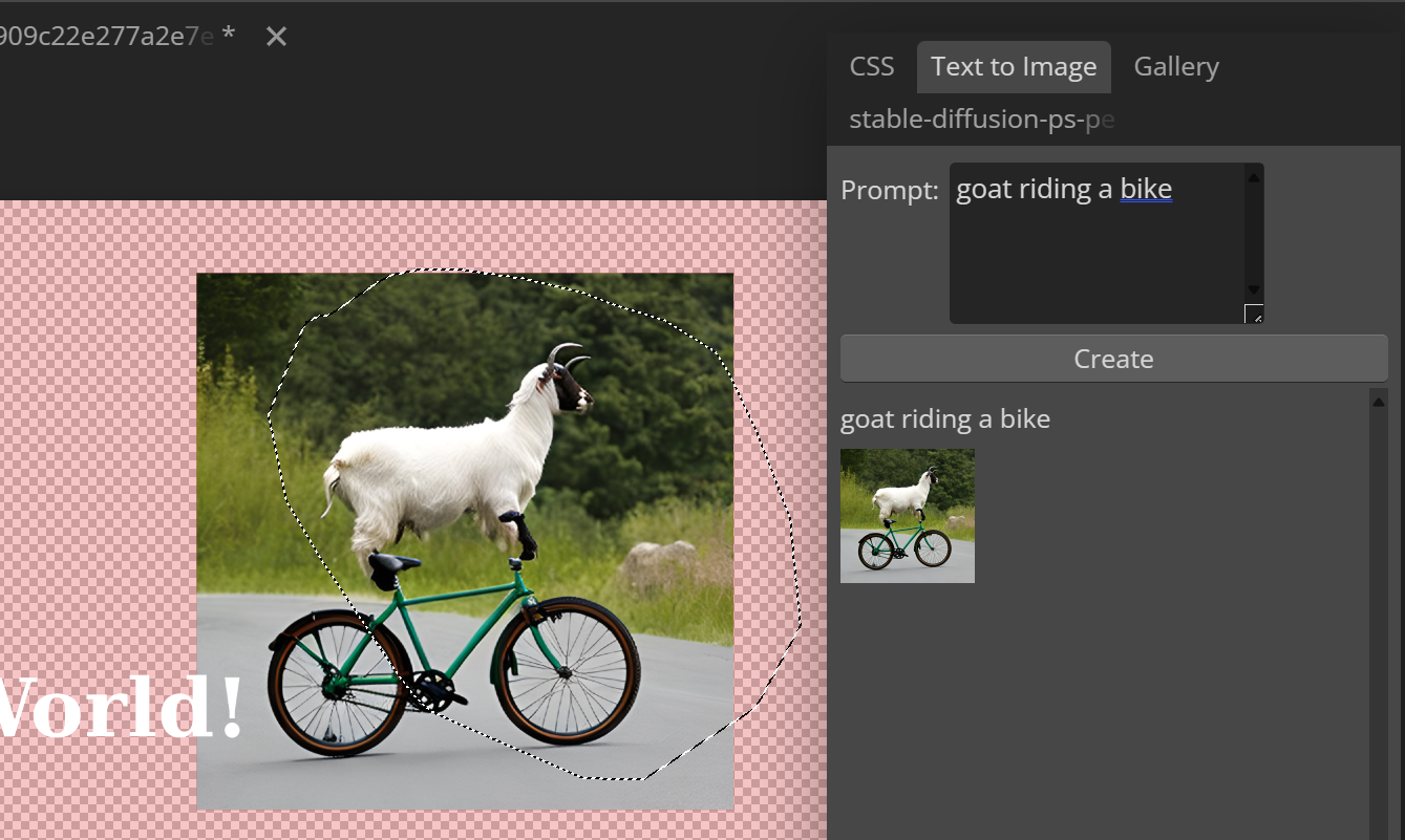 If you upgrade to Photopea’s $5-per-month account, you get access to generative AI image services. The Text-to-Image panel (accessible from the Window > More menu) lets you enter text, such as “goat riding a bike.” The generative AI tools in Photopea, like most similar tools at the moment, are not always convincing. Even Photoshop’s gen-AI features aren't perfect, unless you iterate your text prompt many times.