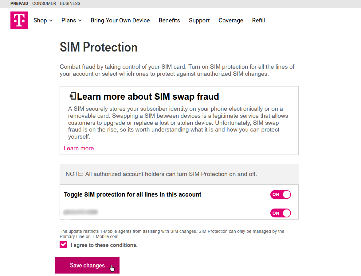 T-Mobile’s SIM Protection prevents unauthorized number transfers and port-outs. To enable this, sign in to your T-Mobile account via the website or the T-Life app. Note that the T-Life app only supports postpaid accounts. On the website, go to your profile page and select Settings > Security > SIM Protection, then enable the feature for the numbers you wish to protect and save your changes.