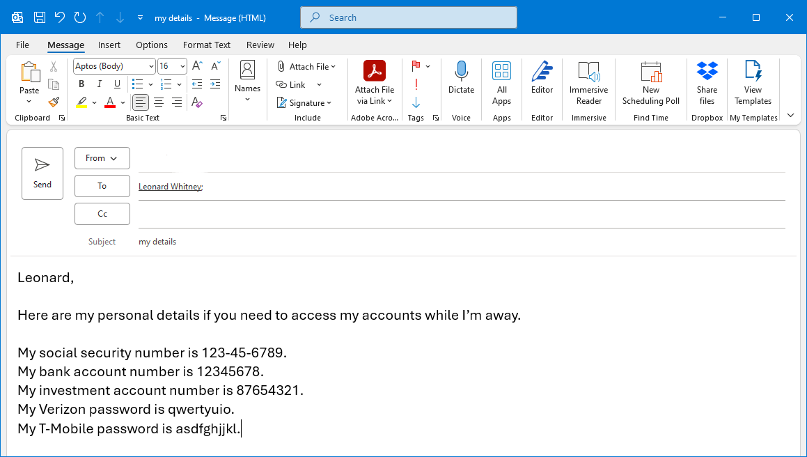 Email and text messaging are not always secure. While end-to-end encryption has improved the security of messaging apps like Signal, there are still vulnerabilities. For example, messages between an iPhone and Android phone are not encrypted. Be cautious about sharing sensitive information in emails or texts, such as your Social Security number, bank details, or passwords.