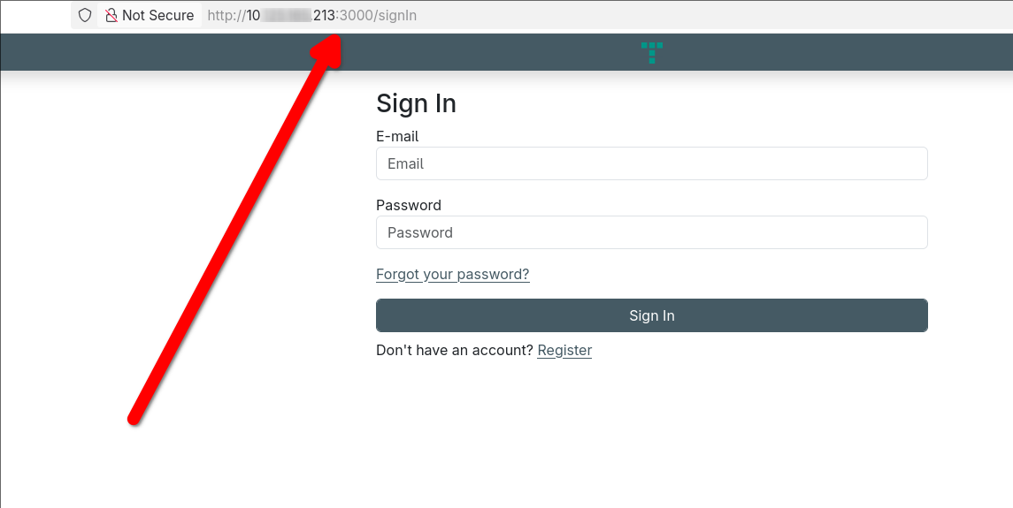 After the deployment is complete, you can access the Titra web interface by opening a browser and navigating to the specified URL. If you're accessing the app from the same machine where it was deployed, simply enter:
