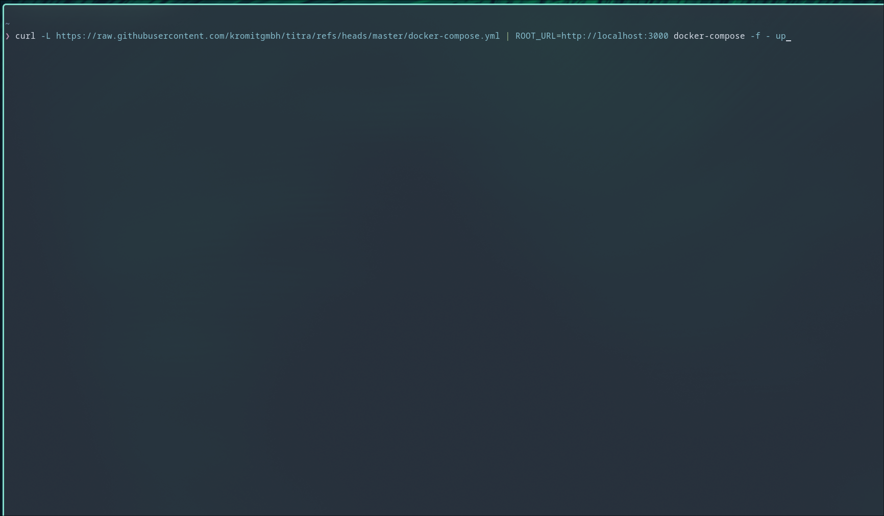 This command downloads the Docker Compose configuration file from the Titra repository and starts the services defined in the file. The ROOT_URL environment variable specifies the URL where the Titra app will be accessible, which defaults to http://localhost:3000.