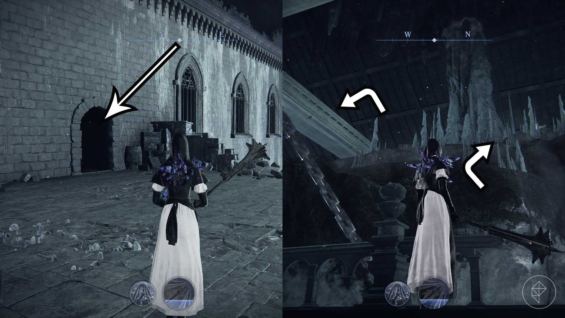 The Scholar is hidden on the top floor of the castle. To find them, circle around the castle from the outside toward the northwest side, where there is a Spiritstream (blue-flame icon on the map). Use it and land on the open area at the top of the castle.