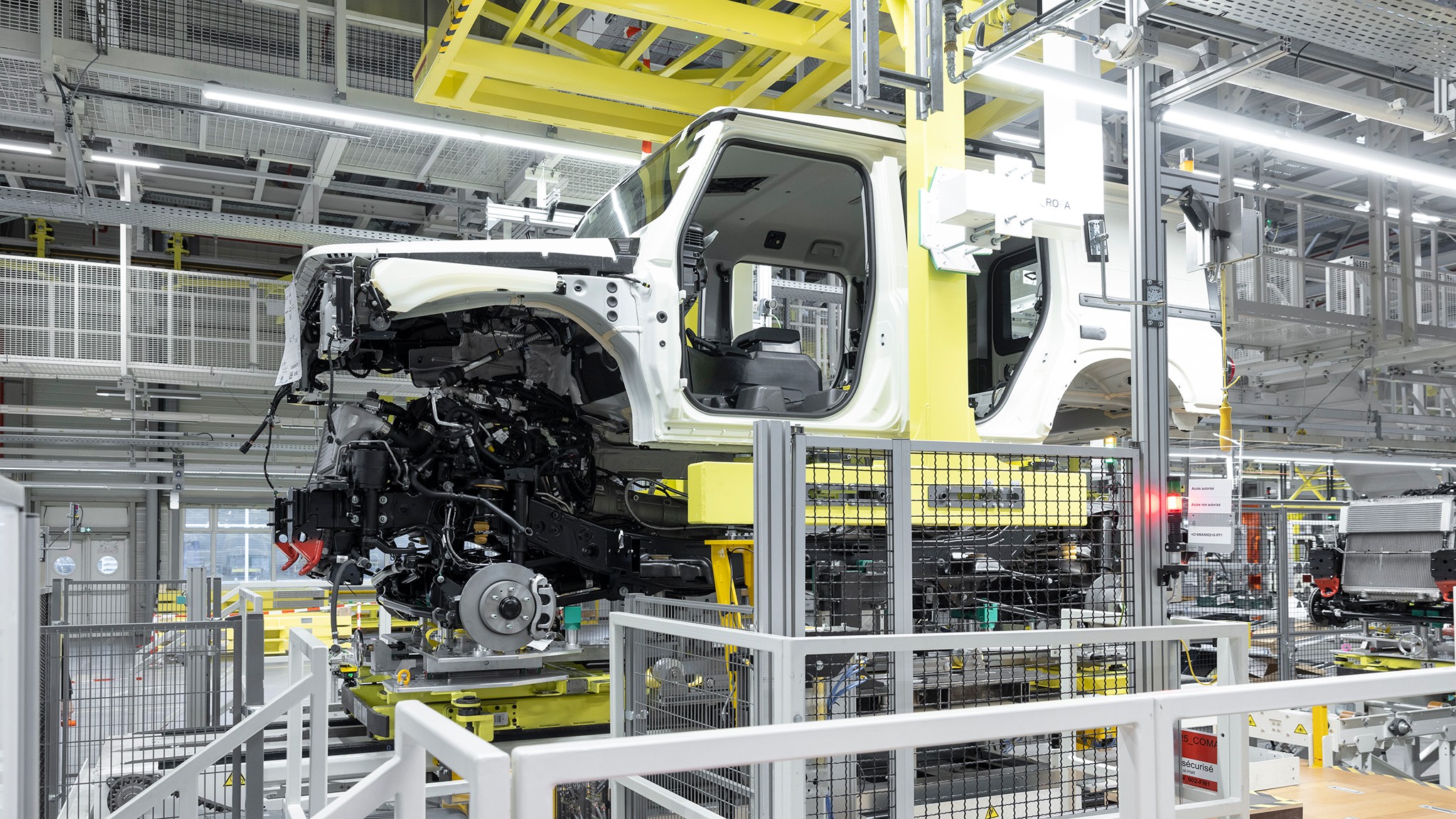 Because the body is a separate assembly from the ladder frame, the chassis retains its rigidity and durability even after modifications like removing the entire roof. This is a significant advantage over unibody designs, such as the 2026 Land Rover Defender, where removing the roof would require extensive bracing to maintain structural integrity. The roofs on the original concept and production model are primarily for sun shading and protection from rain, while the windshield folds down like the old-school Defender it draws inspiration from.