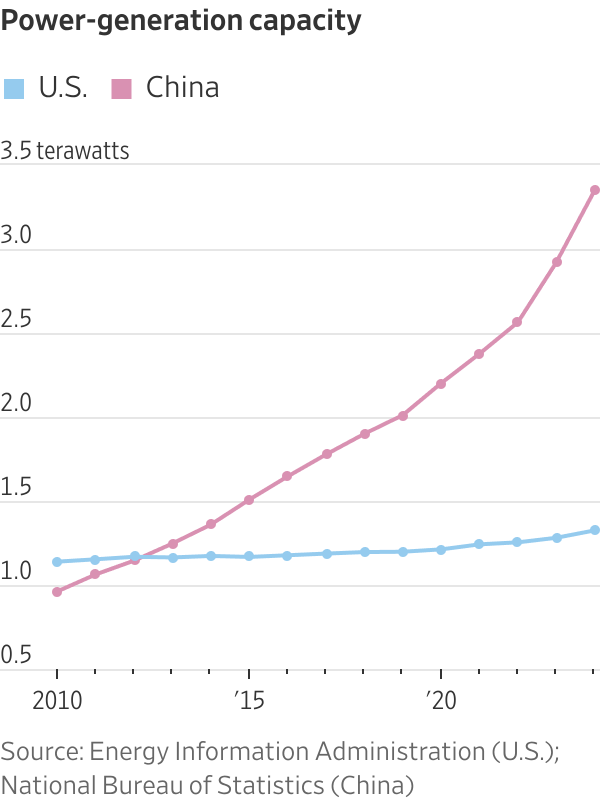 In the U.S., some tech companies are building their own power plants to support data centers. President Trump has pledged to match China’s power build-out, aiming to position the U.S. to “win the AI race while lowering energy prices and increasing grid efficiency.”