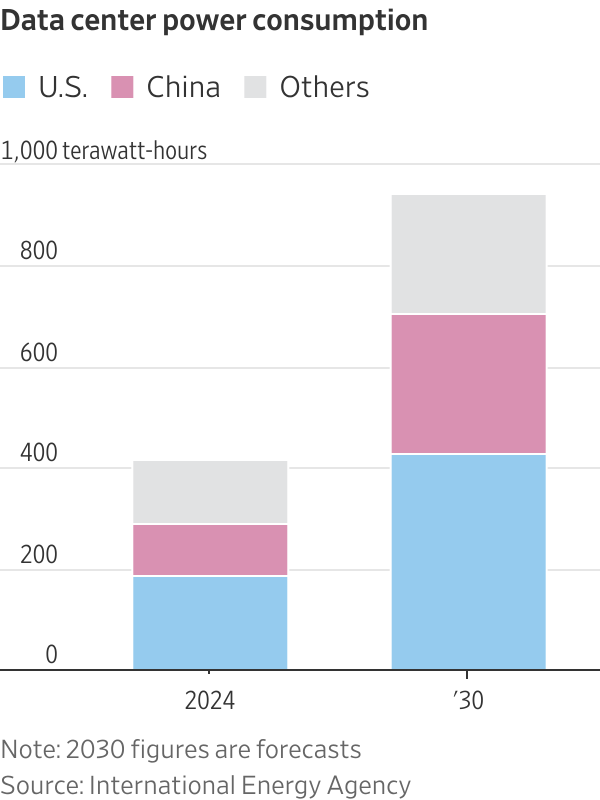 U.S. data centers are even more energy-intensive. According to the International Energy Agency, they accounted for 45% of global data-center electricity consumption last year, compared to 25% for China.