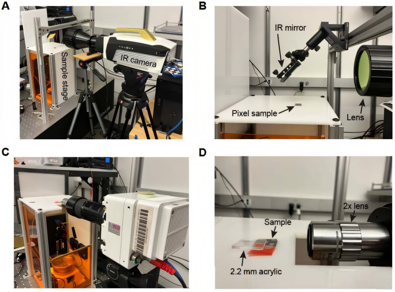 The same light source powers the pixels, which contain an air-filled cavity and a suspended thin graphite film. The film absorbs incoming light and rapidly rises in temperature, which heats the captive air. The air expands, and the pixel's top surface deflects outward by as much as one millimeter—yielding an easily perceptible bump above the illuminated pixel.