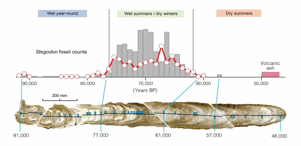 To make sure the cave record matched real life above ground, the team studied elephant teeth. Like modern animals, Stegodon absorbed chemical traces from drinking water into their enamel. Those traces mirrored the cave signals, showing the same steady drying trend outside.