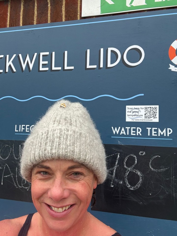 Crisp winter mornings at Brockwell Lido are a source of pure happiness. The sun sparkling on the blue water, temperatures hitting single digits, and the tingle of cold water swimming never fade. I skip the wetsuit and swimming socks but never forget my trusty woolly hat. Currently, I'm wearing one lovingly made by Finnish grannies from Myssyfarmi, though I'll soon switch to my festive Christmas Pudding hat. Wave if you spot me in the water!