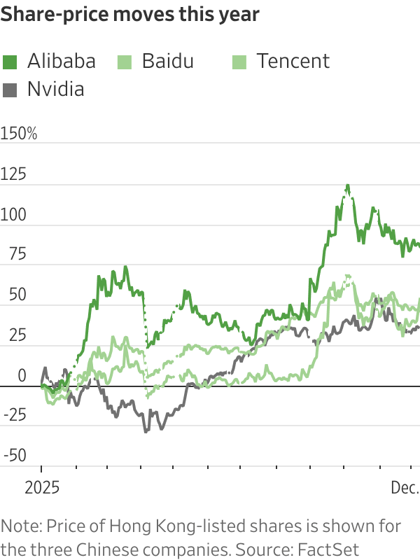 Shares of internet giant Alibaba, listed in Hong Kong and New York, have risen more than 80% this year, reaching a four-year high. The company plans to invest $53 billion over three years to build out AI infrastructure and pursue artificial-general intelligence.